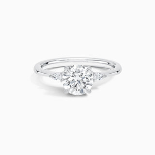 Marquise & Round Side Stone Setting 2 ct. Oval-Cut Engagement Ring in 18K White Gold size 6.5