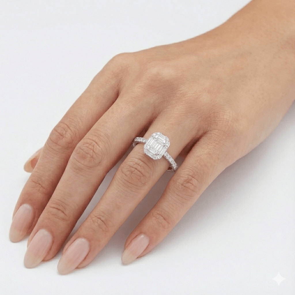 This Art Deco–inspired diamond ring is all about clean lines, balance, and timeless sparkle. Bold without being flashy, it blends architectural structure with soft brilliance for a look that feels both classic and modern.