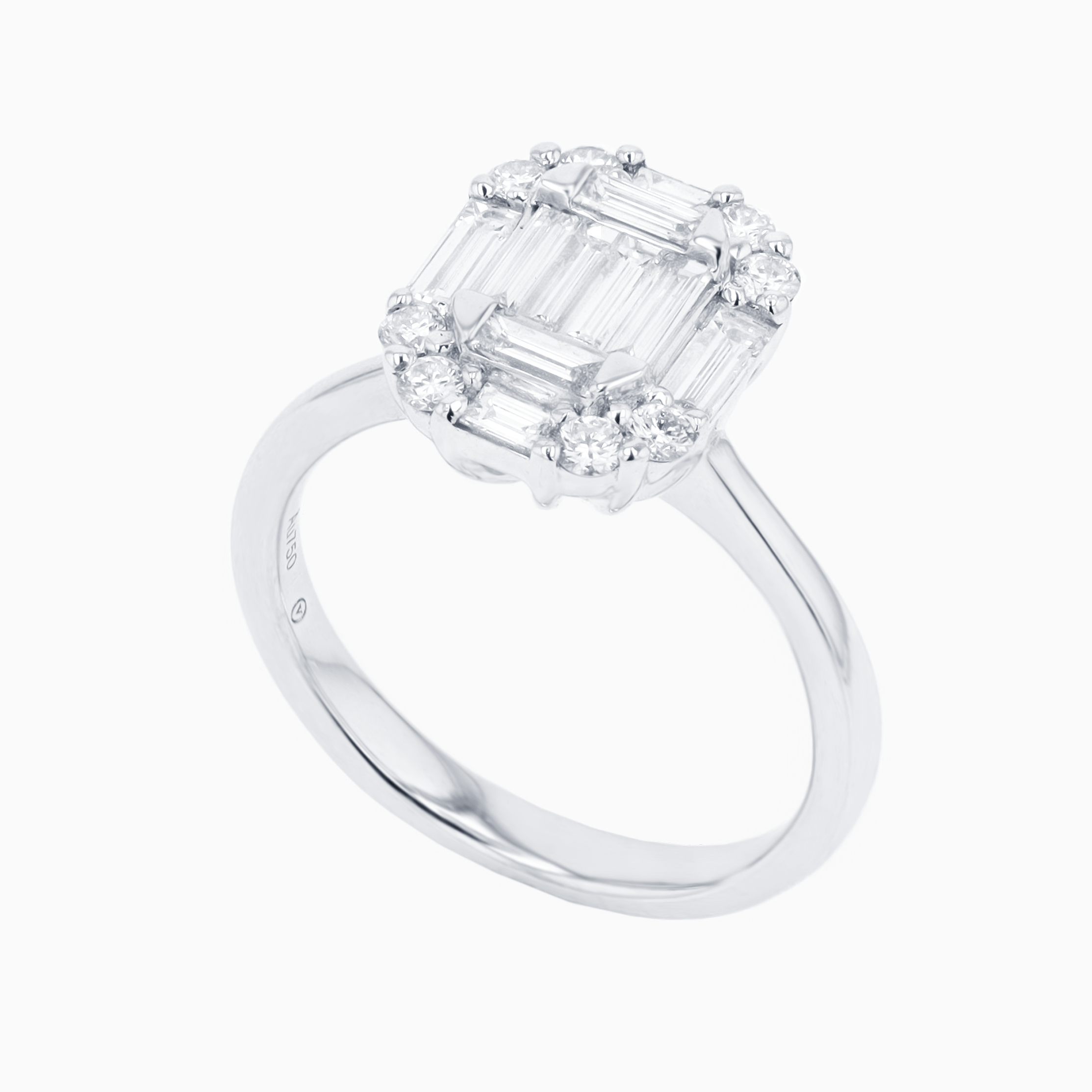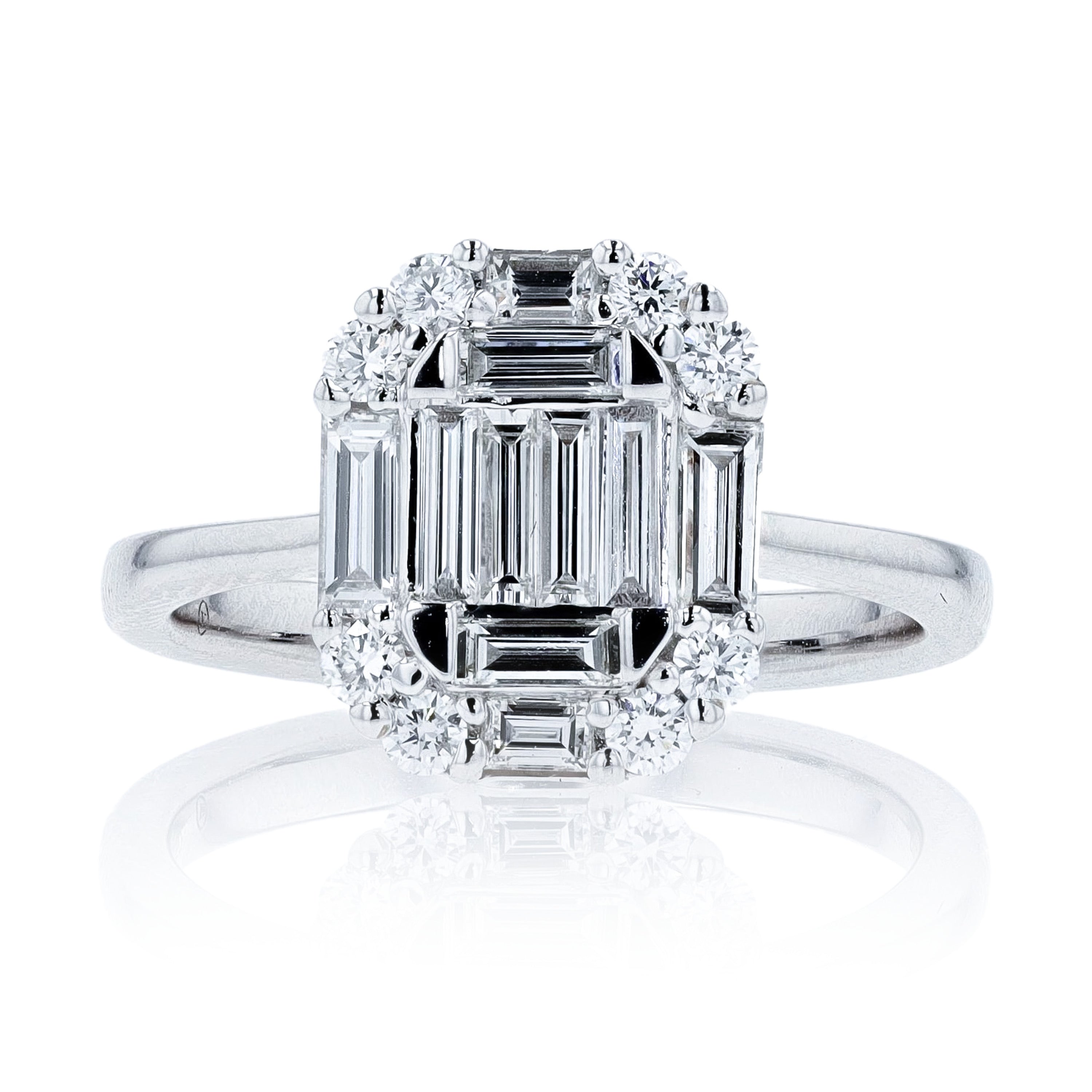 Striking Center Design: A beautifully arranged mix of baguette and round diamonds creates a strong geometric centerpiece with depth and dimension.