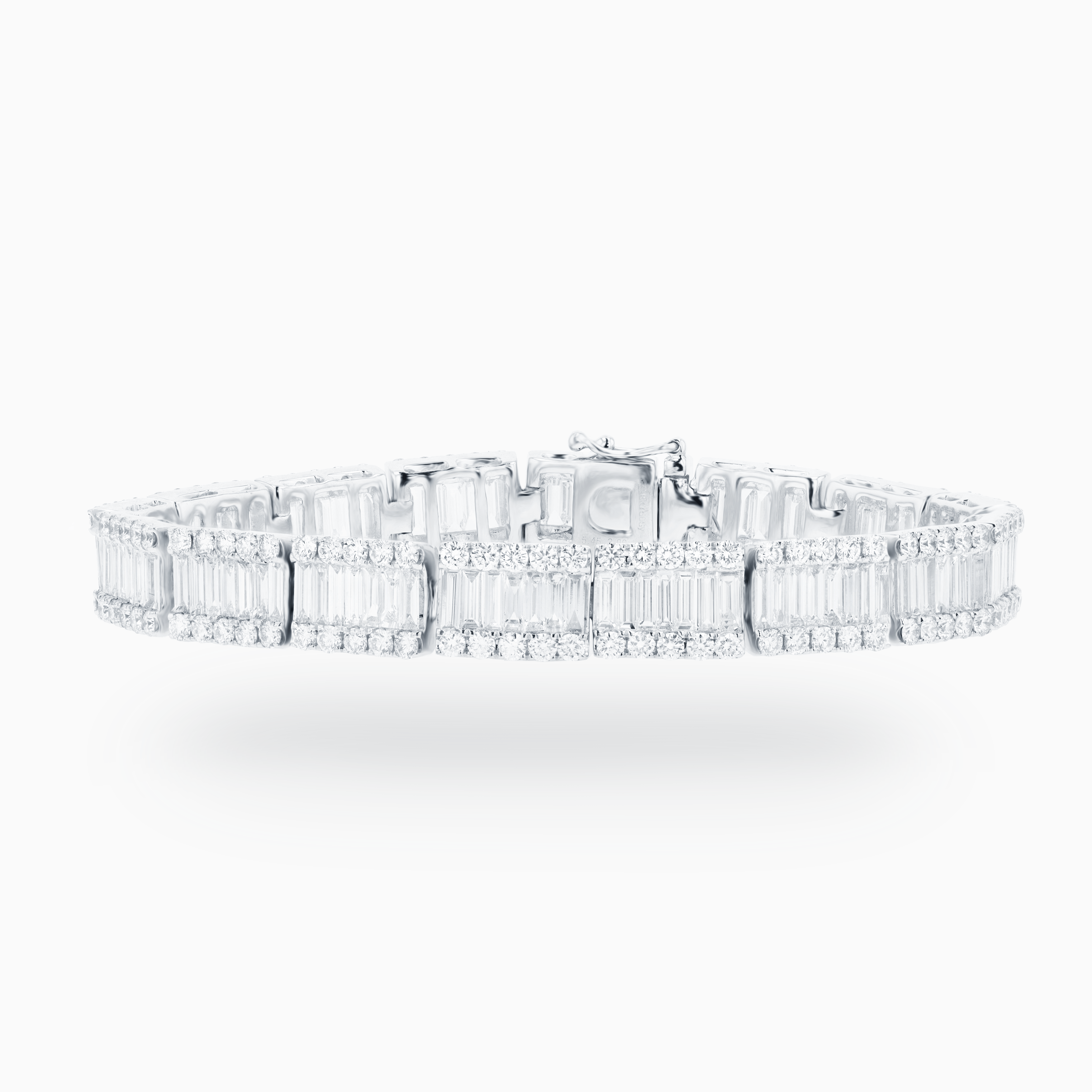 The Deco Eternal Bracelet is a striking homage to the bold elegance of Art Deco design, crafted to celebrate the beauty of symmetry, light, and refined craftsmanship. Handcrafted in 18K white gold, this bracelet features a continuous flow of natural diamonds totaling 9.44 carats, set to maximize brilliance and sparkle. The diamonds, with a clarity of VS-1 and a color grade of G-H, create a seamless rhythm of light that enhances the bracelet’s architectural elegance. Inspired by the geometric precision of the Deco era, the design combines structural sophistication with fluid movement, making it a timeless statement piece that transitions effortlessly from day to evening wear. Its polished finish and substantial 23.11-gram weight ensure both durability and luxurious presence, while the 17 cm length drapes gracefully on the wrist for a secure, comfortable fit. Perfect for collectors and admirers of refined luxury, the Deco Eternal Bracelet embodies enduring style and radiant elegance.