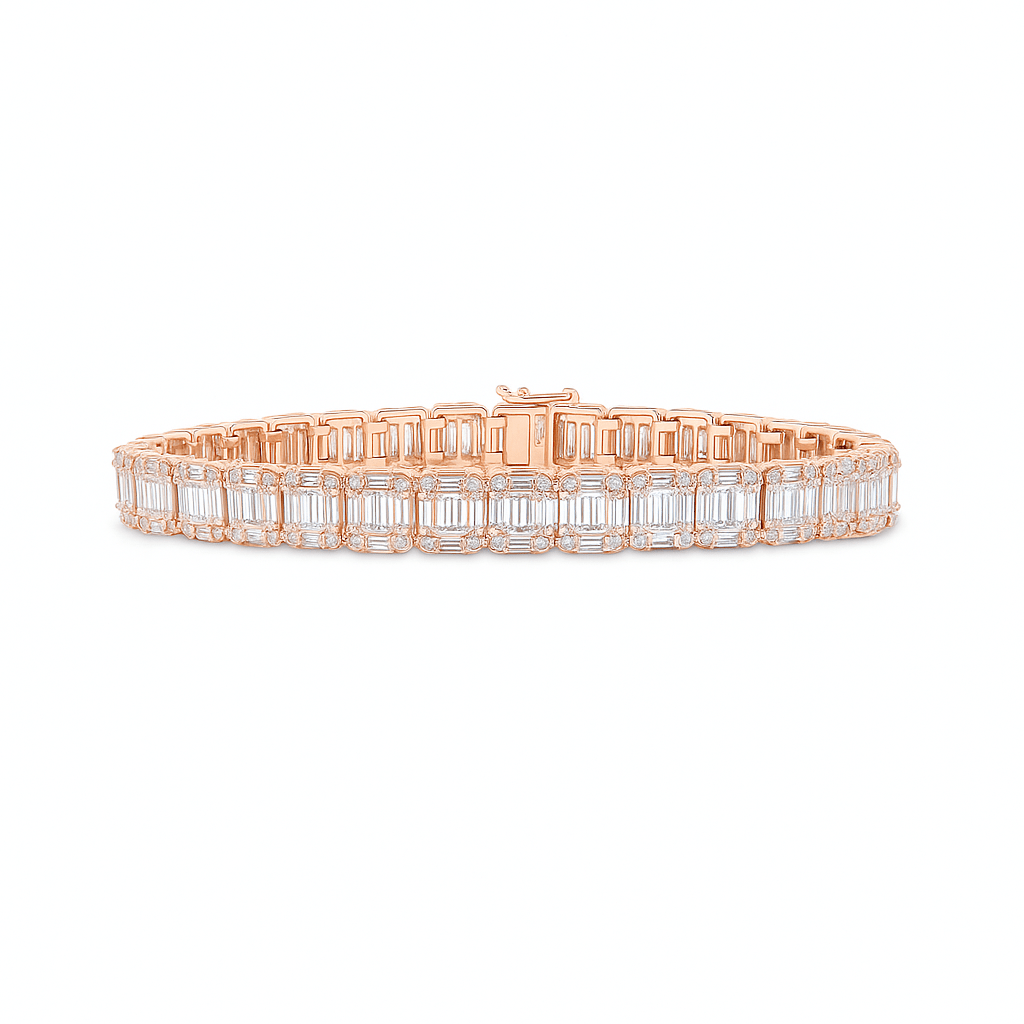 This breathtaking Deco Visage diamond bracelet embodies timeless elegance and refined luxury. Handcrafted in 18K rose gold natural diamonds, it showcases the artistry of fine jewelry design while highlighting the brilliance of each meticulously selected diamond. With its seamless design and radiant sparkle, this piece is both a statement of sophistication and a versatile treasure to be worn for years to come.