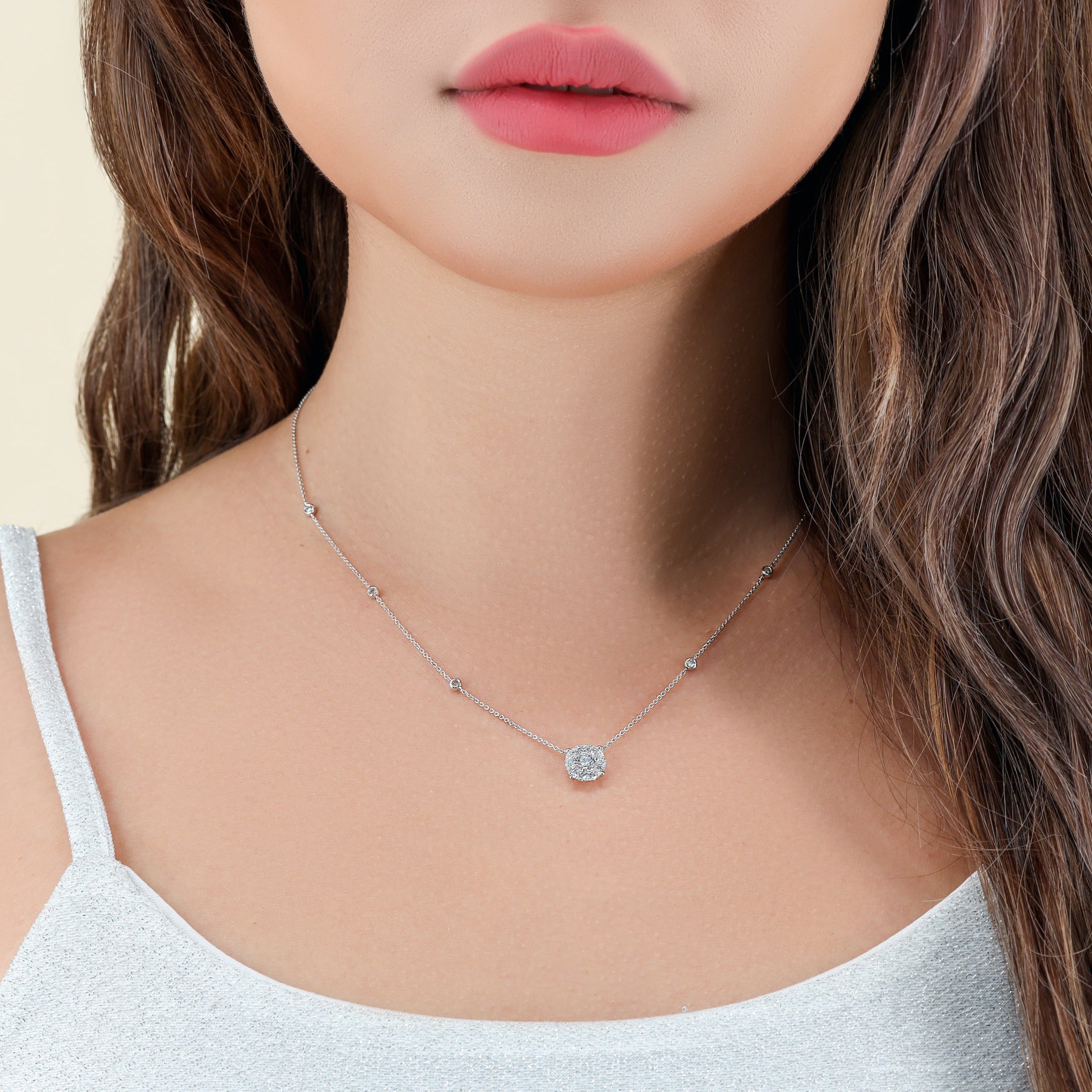 The Seamless Raisa Necklace is a beautifully crafted piece that exudes elegance and timeless sophistication. Made in luxurious 18k white gold, this necklace features a seamless, delicate chain adorned with sparkling natural diamonds. The pendant showcases a stunning round cluster of diamonds with a combination of prong and channel settings, creating a harmonious and secure design that highlights the brilliance of each stone. With a total diamond weight of 0.77 carats—G-H in color and VS-2 clarity—the necklace radiates sophisticated sparkle from every angle. The length of 16.5 inches makes it a versatile piece that complements both casual and formal looks. Customizable in platinum, 18k rose gold, or 18k yellow gold, this necklace adds a luminous, celestial touch to any jewelry collection, perfect for elevating your everyday style or special occasions.